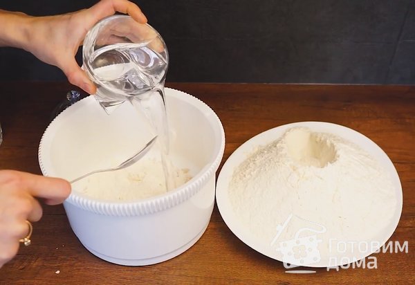 3. Замешиваем тесто, оно должно получится очень мягким, не липнуть к рукам. Ни в коем случае не добавляйте слишком много муки, иначе можно забить его, оно будет плотным и твердым.