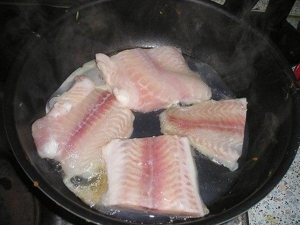 1.Рыбку режем на порционные куски и обжариваем на сковородке.