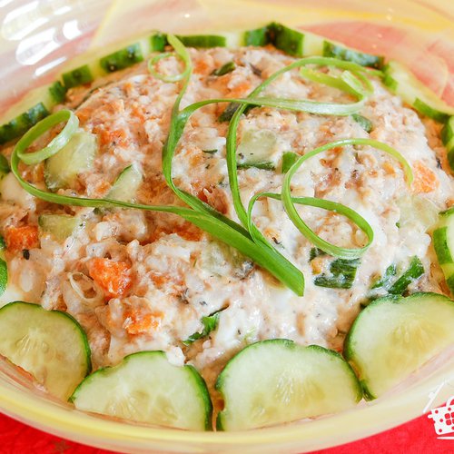 Салат из горбуши с рисом