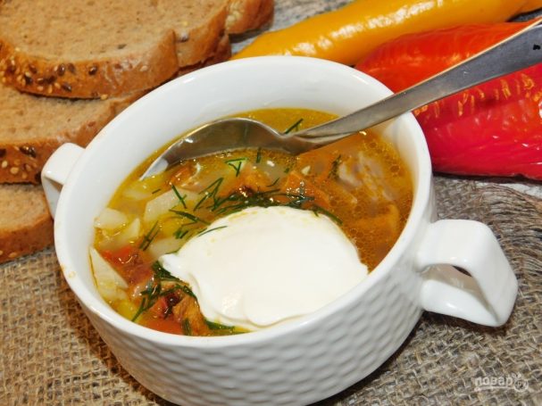 Подавайте суп горячим, добавив ложку сметаны.