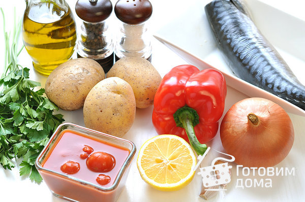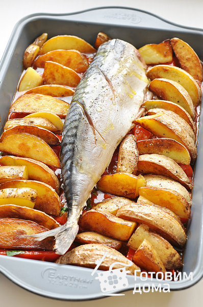 Скумбрия, запеченная с картофелем и болгарским перцем