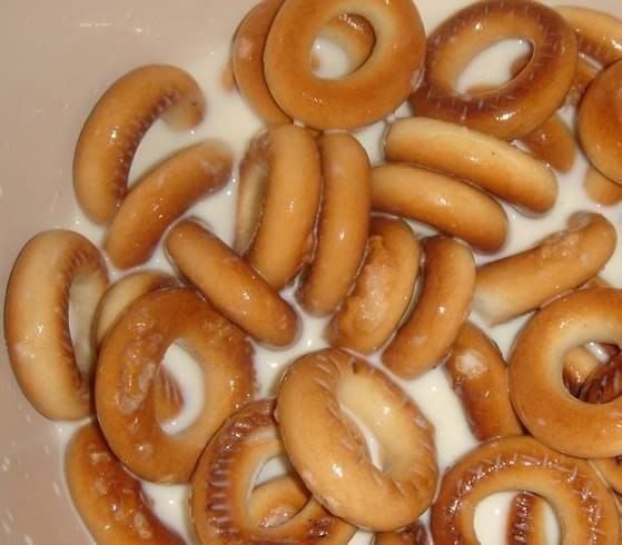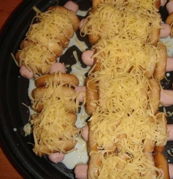 1. Самое главное - чтобы отверстия в сушках совпадали по размеру с толщиной сосисок. Прикиньте, сколько сушек Вам понадобится, и сложите их в глубокую емкость.Сушки замочить в подсоленном молоке, чтобы немного размякли. Время не пишу, все зависит от сушек.