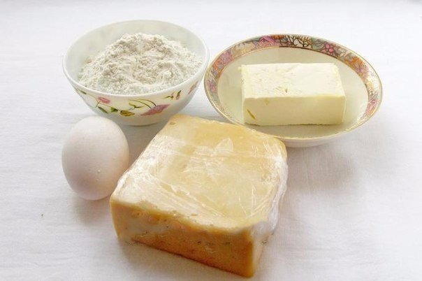 1. Для приготовления сырных крекеров нам понадобятся сыр, масло, мука, желток 1 яйца.