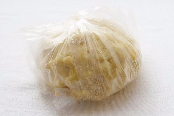 5. Завернуть в плёнку или пакет и положить на 30 минут в холодильник. Затем тесто нужно будет ещё немного подмесить до однородности.