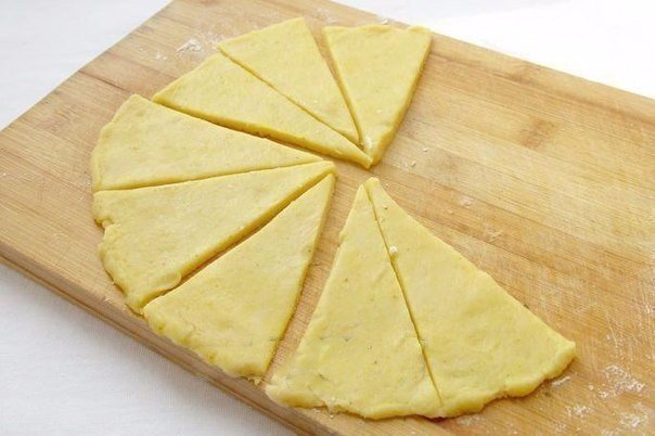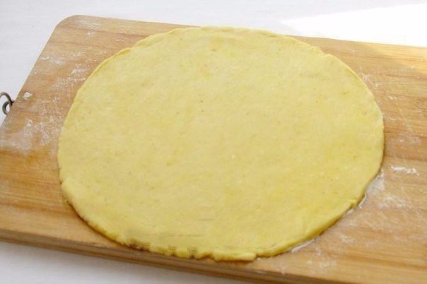6. Тесто разделить на 2 части. Раскатать каждую в круг.