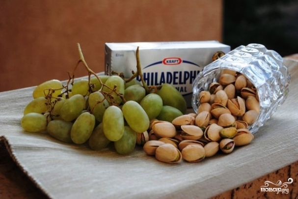 Итак, у нас есть всего 3 ингредиента: фисташки, сыр и виноград.