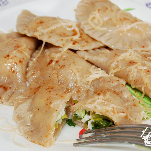 Вареники из ржаного теста с творогом и черемшой