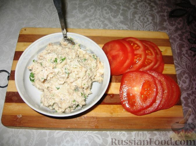 Закуска из фасолевого паштета на помидорах