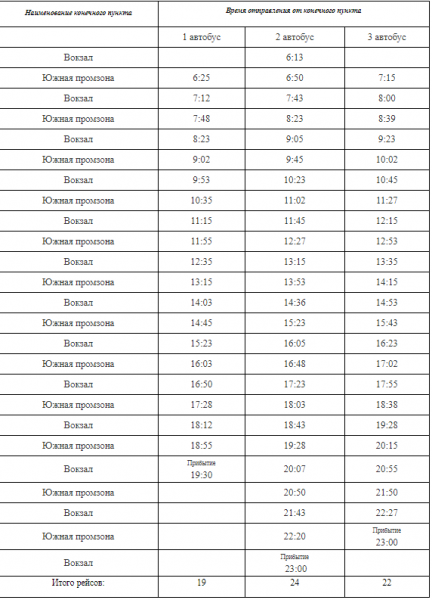 РАСПИСАНИЕ движения автобусов по муниципальному маршруту № 7 «Южная Промзона- Вокзал»: