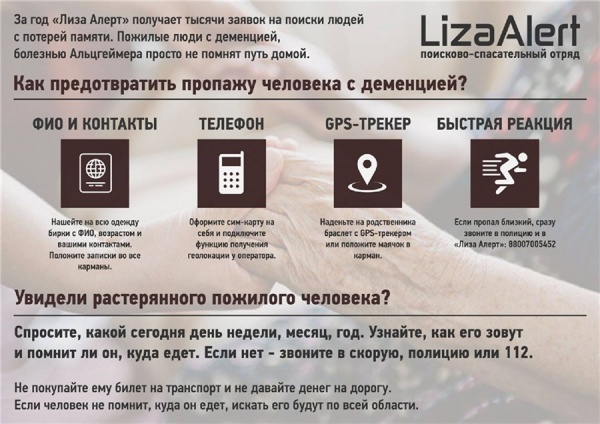 «История закончилась хорошо только благодаря неравнодушию сотрудников автобазы „Турист“, за что от лица отряда выражаем им горячую благодарность. Обращайте внимание на пожилых людей, чье поведение кажется вам странным, задайте им несколько простых вопросов — как их зовут, сколько им лет, где они живут, какой сейчас год, день и месяц. 2 минуты потраченного времени могут стоить кому-то жизни», — отметили представители поискового отряда.