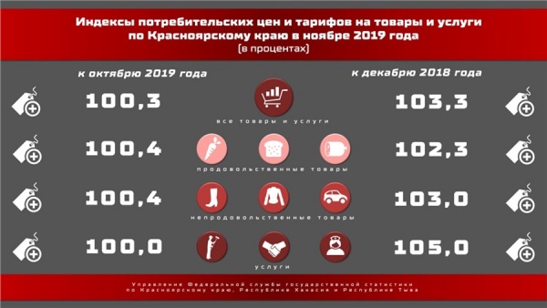 При этом статистики отмечают, что цены на непродовольственные товары и услуги по сравнению с декабрём 2018 года выросли на 2,3 %, продукты питания — на 3 %, услуги (ЖКХ, связь, транспорт) — на 5 %.