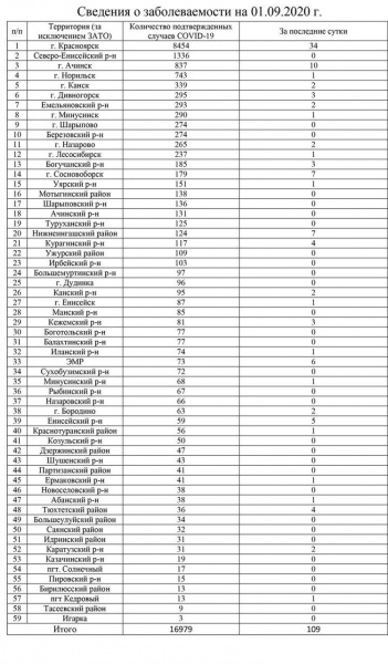 За прошедшие сутки в Красноярском крае заразилось коронавирусом ещё 109 человек, таким образом общее число заболевших составило 16 979 случаев.