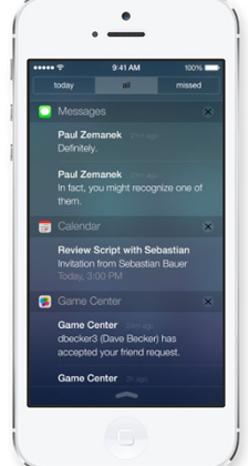 Основной экран iOS теперь умеет реагировать на наклоны аппарата и отображает соответствующую анимацию. В состав системы вошел «Центр управления» (Control Center) — он предоставляет доступ к наиболее популярным настройкам и включает и выключает фонарик.