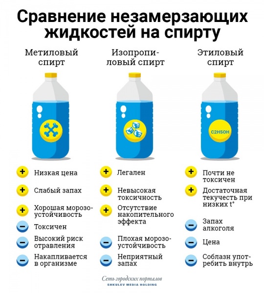 Мы не проводили экспертиз, но причины парадокса известны: в основе легальных незамерзаек чаще всего изопропиловый спирт (это отмечено на этикетке), «обочинные» жидкости делаются с применением метилового спирта, оборот которого в России запрещен. Но этот спирт и дешевле, и лучше пахнет, а главное — его смеси более текучи при низких температурах.
