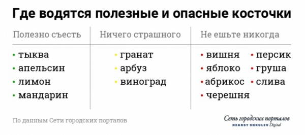 Вы, конечно, не умрете, если случайно съедите арбузную или дынную семечку. Но какие опасности подстерегают нас в косточках других ягод, овощей и фруктов? Можно ли отравиться, если есть гранат с семечками, помогает ли тыква замедлить старение и какие косточки самые опасные? Составить рейтинг нам помогли шеф-повар ресторана Михаил Ковалев и смотритель музея истории плодового садоводства Геннадий Короленко.